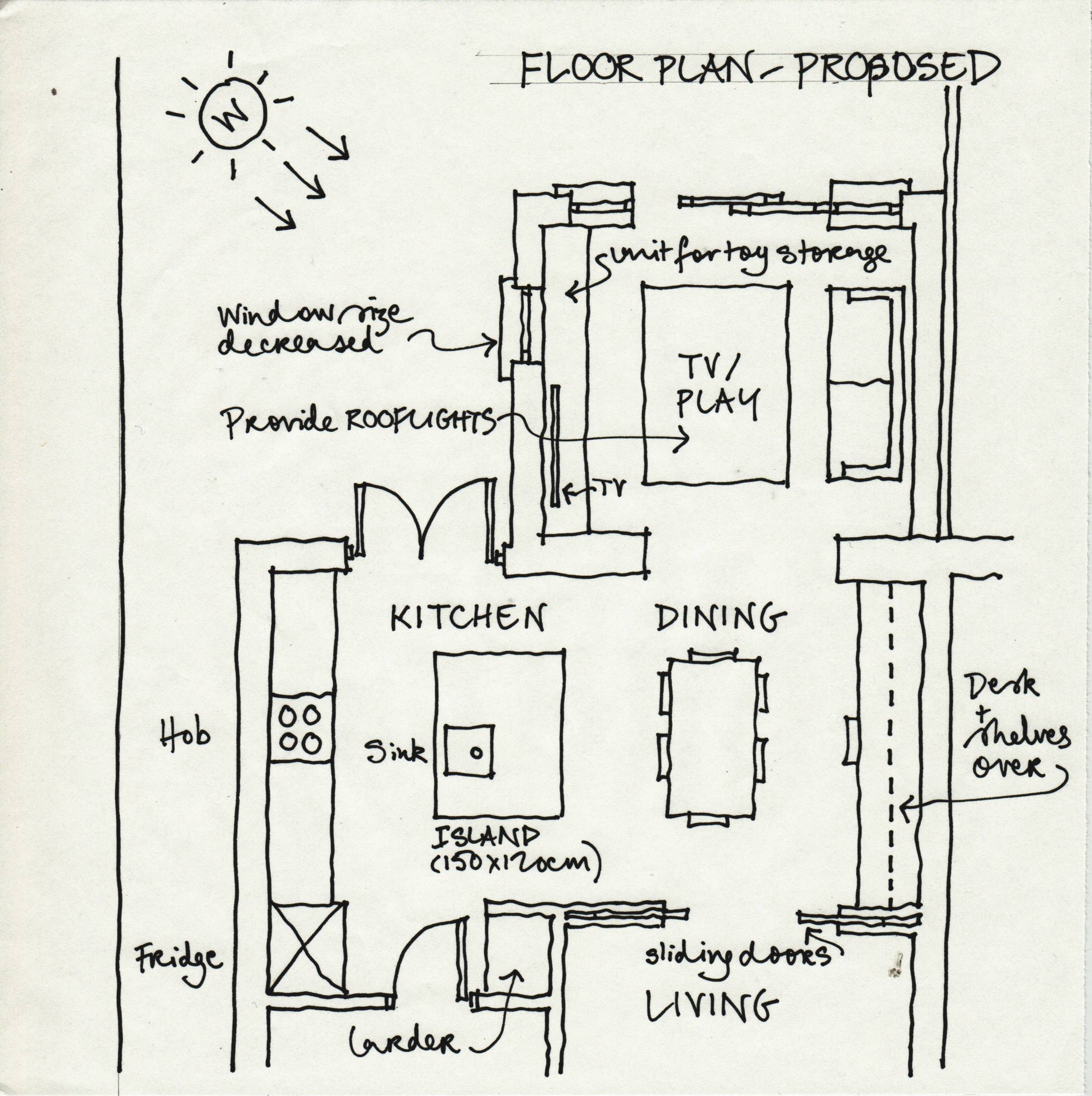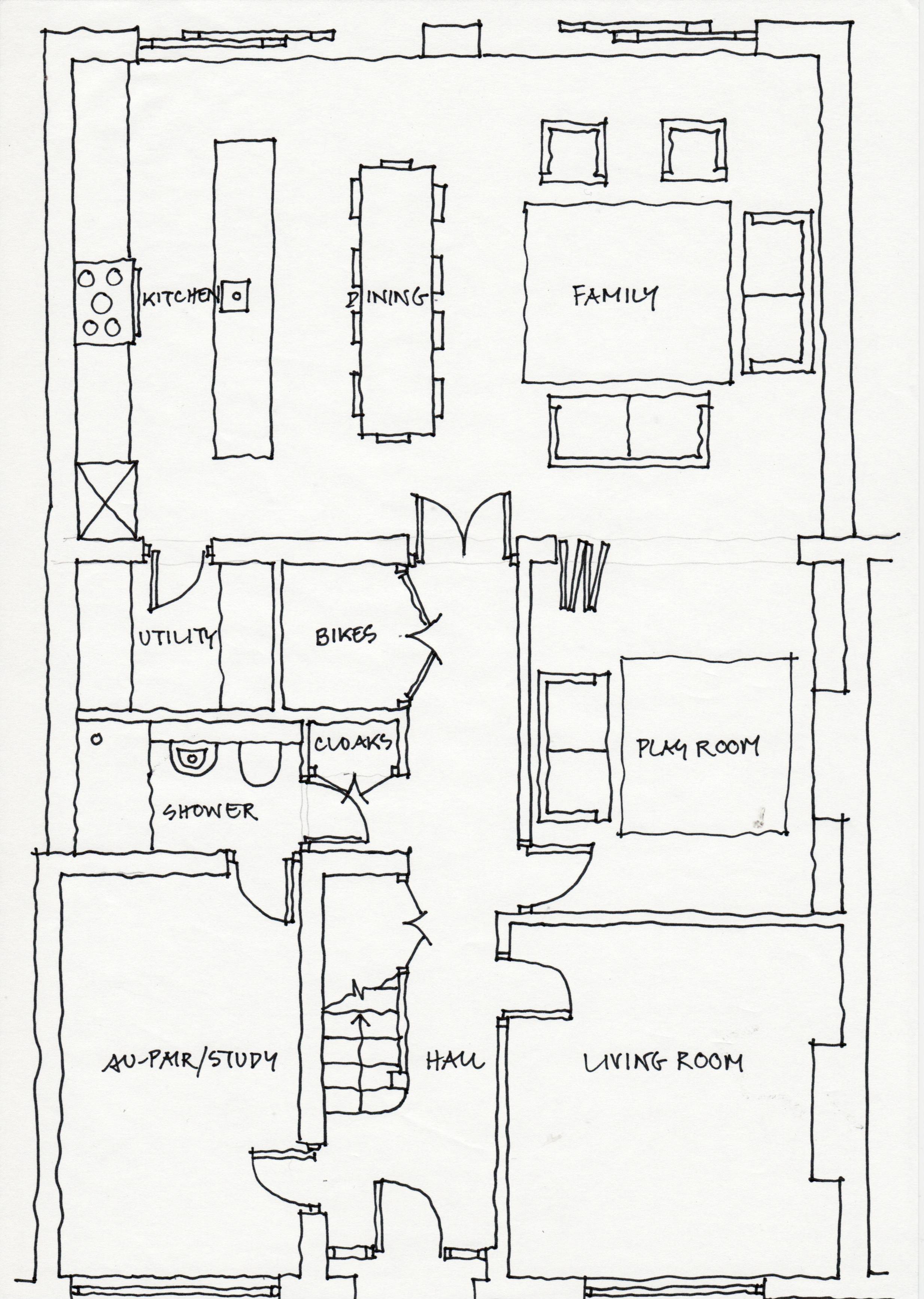 - Provide rear extension, say 4.8m deep, for kitchen/dining/family area