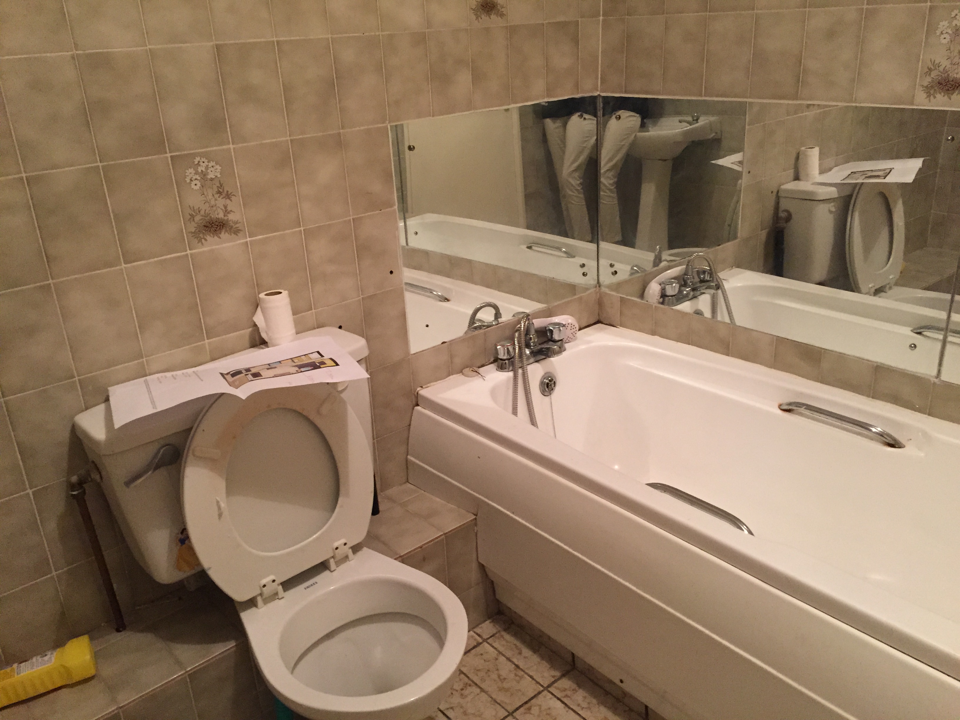 - BATHROOM: a relatively large, dull room with too much beige, too much tiling, too much ducting and an ugly bath.